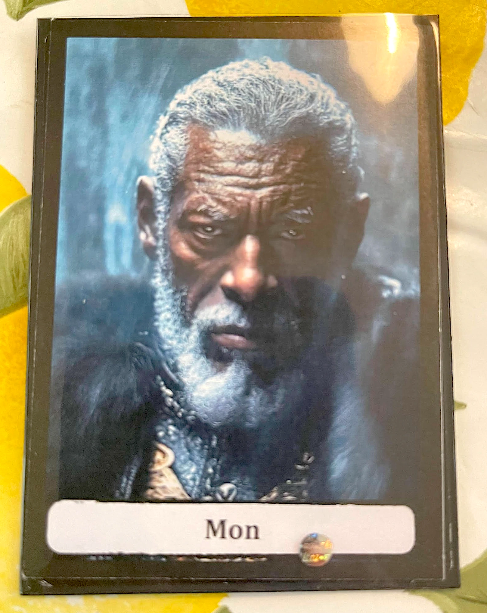 At the same time, in the forest, Lyra is strolling in the forest and finds the raven that has been following her over the last few weeks and a strange-looking card on the ground next to it. She picks up the card but resists the temptation to use it, and then she uses her telepathic “talk with animals” spell to ask the raven about Azaernara. The laconic raven, though, doesn’t share more than a handful of words: hungry, Pico, danger, scary, frozen.